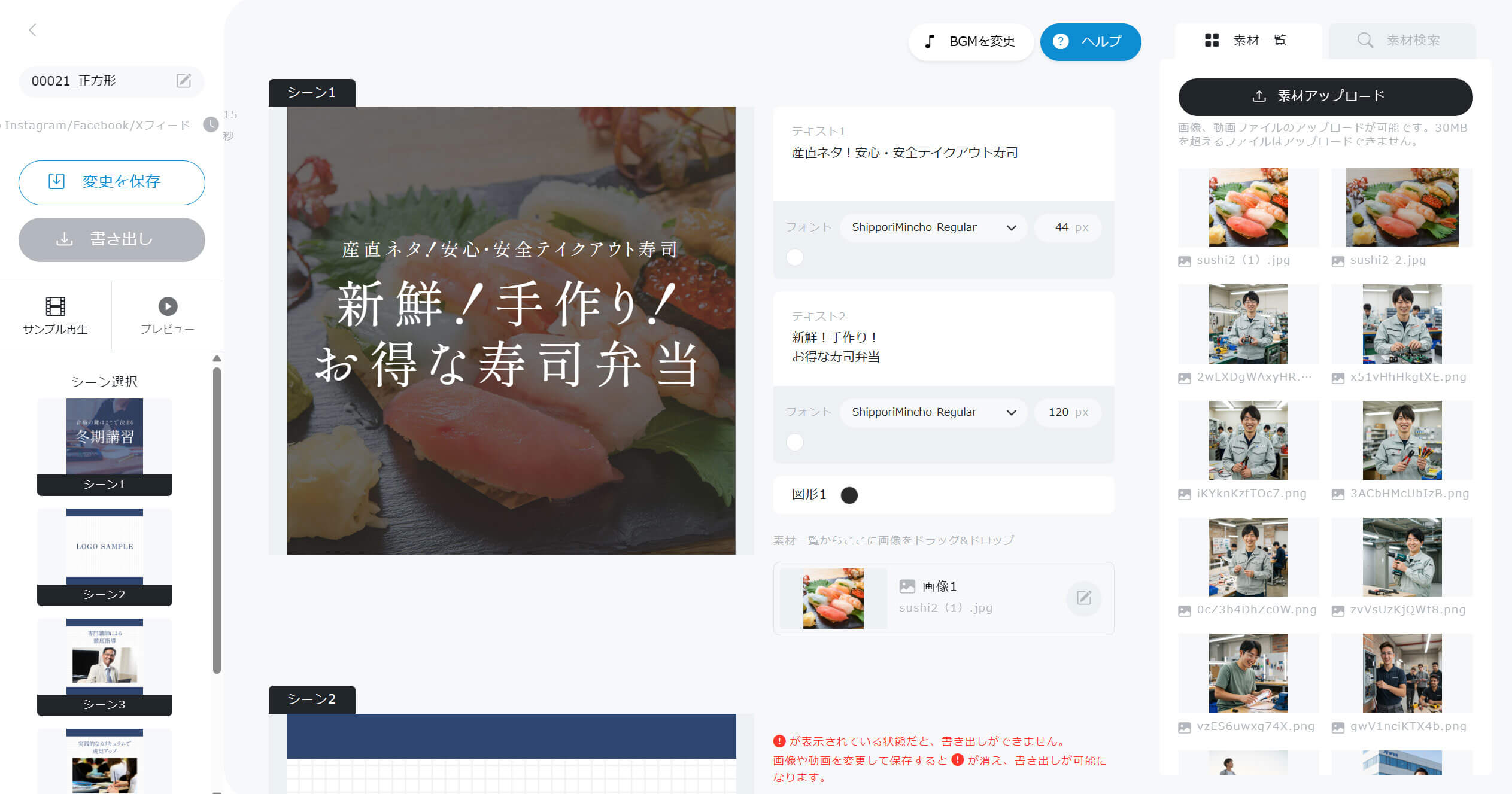 入力するだけで短時間で制作でき、修正や差し替えも即対応可能。